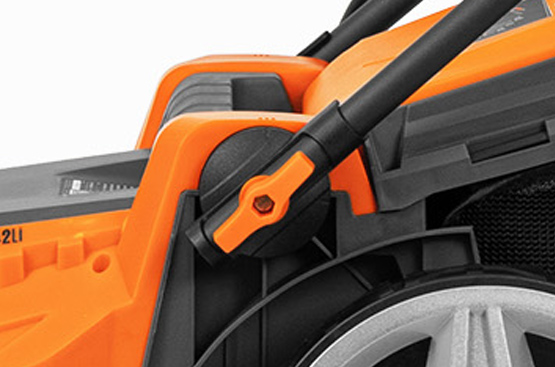Увеличенный размер задних колес позволяет легче передвигать косилку, в том числе на неровных поверхностях.